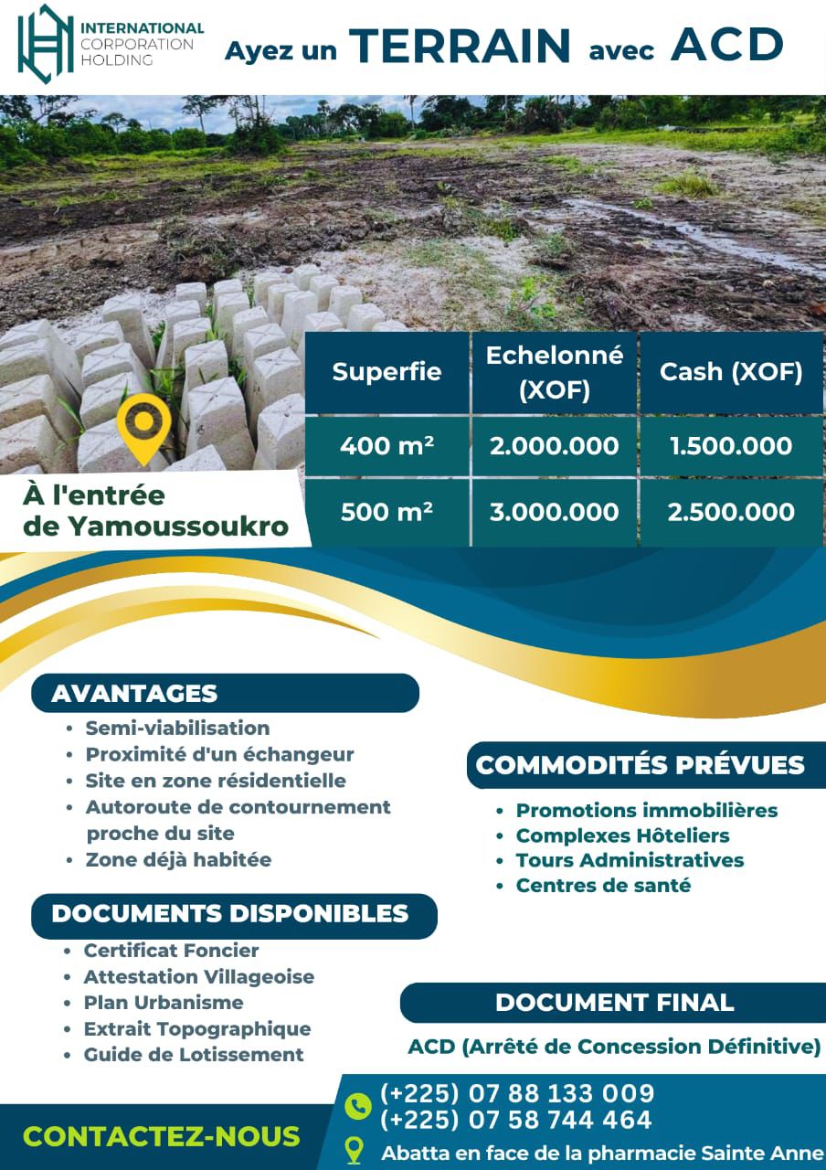 offres de terrains dans la ville de Yamoussoukro